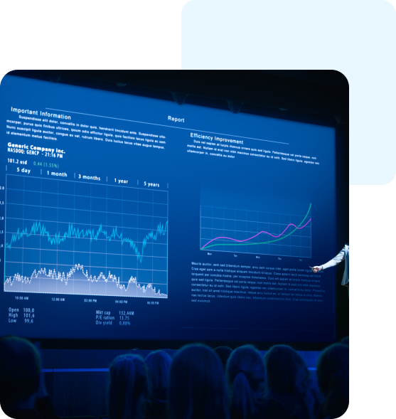Elargissez votre audience grâce à la plateforme virtuelle en se détachant des limites du 100 % présentiel, tout en maximisant l'engagement avec des outils interactifs : Quizz, Q&R, sondages, etc.